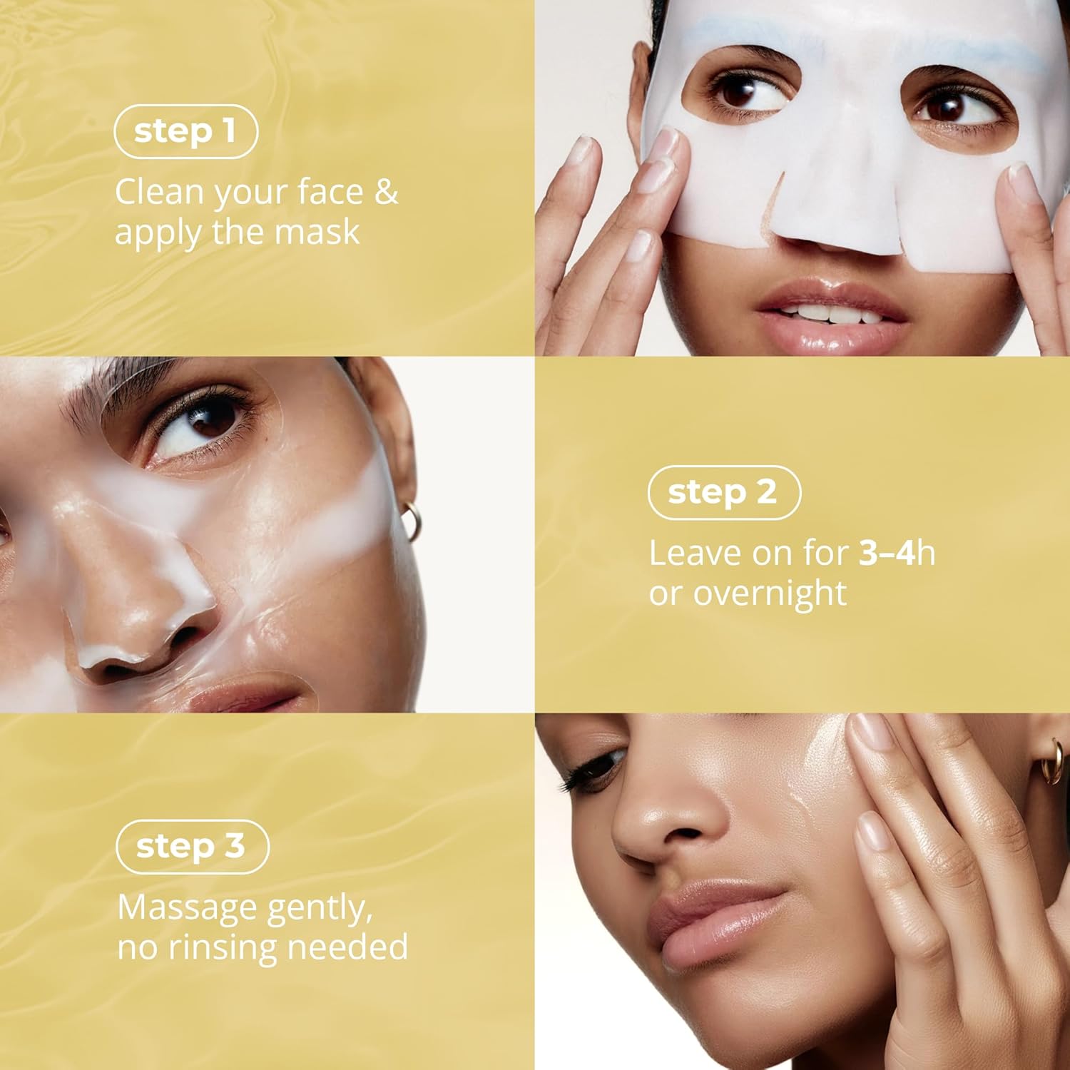 Apply the mask evenly and leave on for 3-4 hours or overnight.